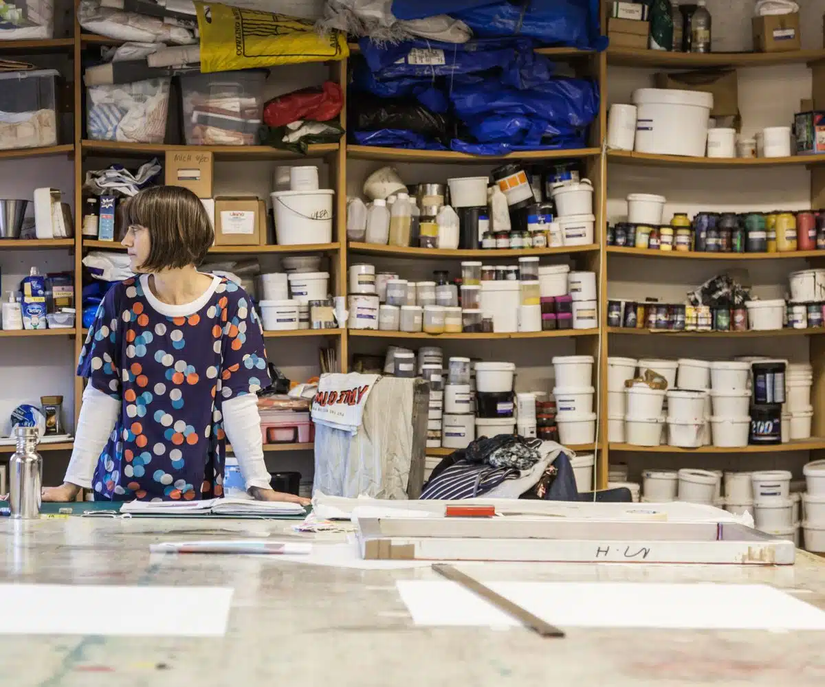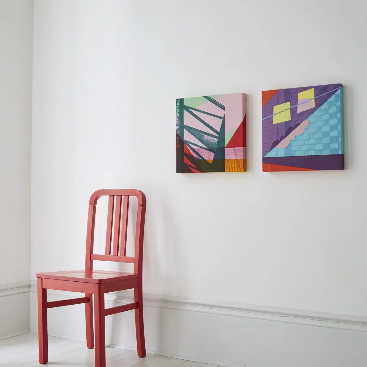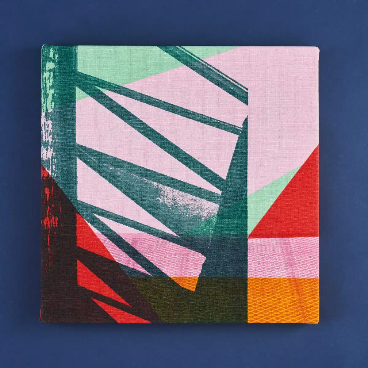 Michelle House is a London based textile artist and designer, creating colourful, abstract hand-printed and painted textile wall-hangings and framed pieces. She uses photographic screens and hand-cut stencils to print in layers. Michelle works with a variety of natural materials and often combines two or more different fabrics, resulting in a change in texture and light. Artworks incorporate her own photography of found geometries and architecture. Michelle also has a range of limited edition digital archival prints.