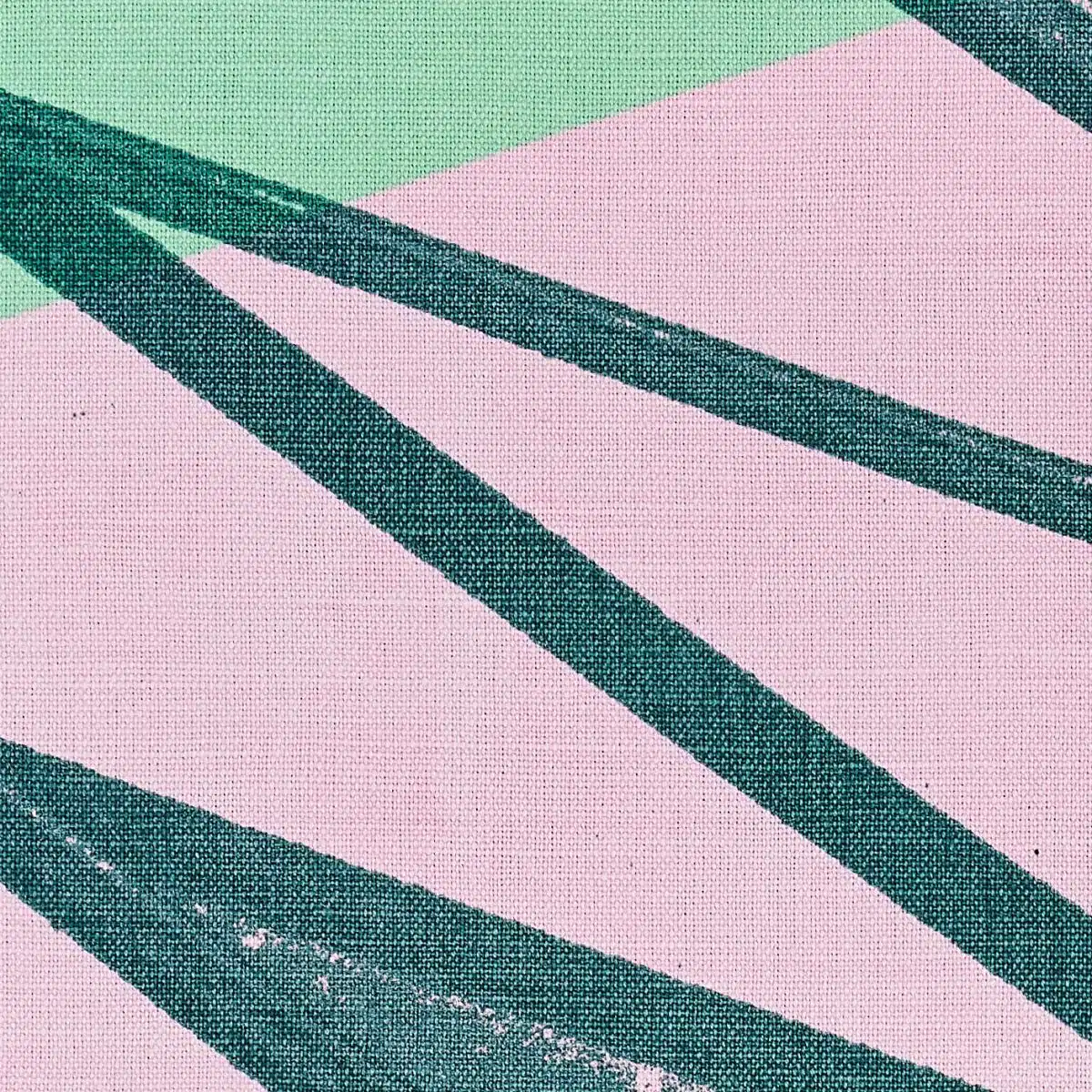 Inspiration for ‘Young Vic Abstract: Pink’ came through Michelle’s study of the architectural space and details of the Young Vic theatre in London. It followed on from a previous body of work and project also inspired by the Young Vic, for architecture practice Buro Four. The piece is made by hand-printing and painting with dyes and pigments. Photography, drawing and hand-cutting stencils, steaming, washing and sewing are also all parts of the making process.
