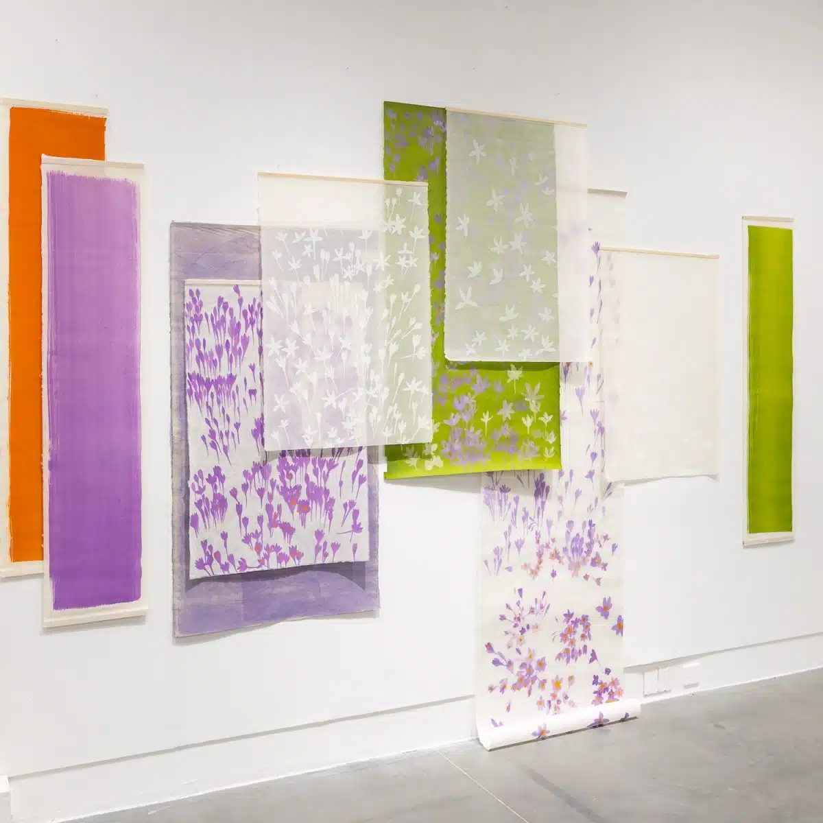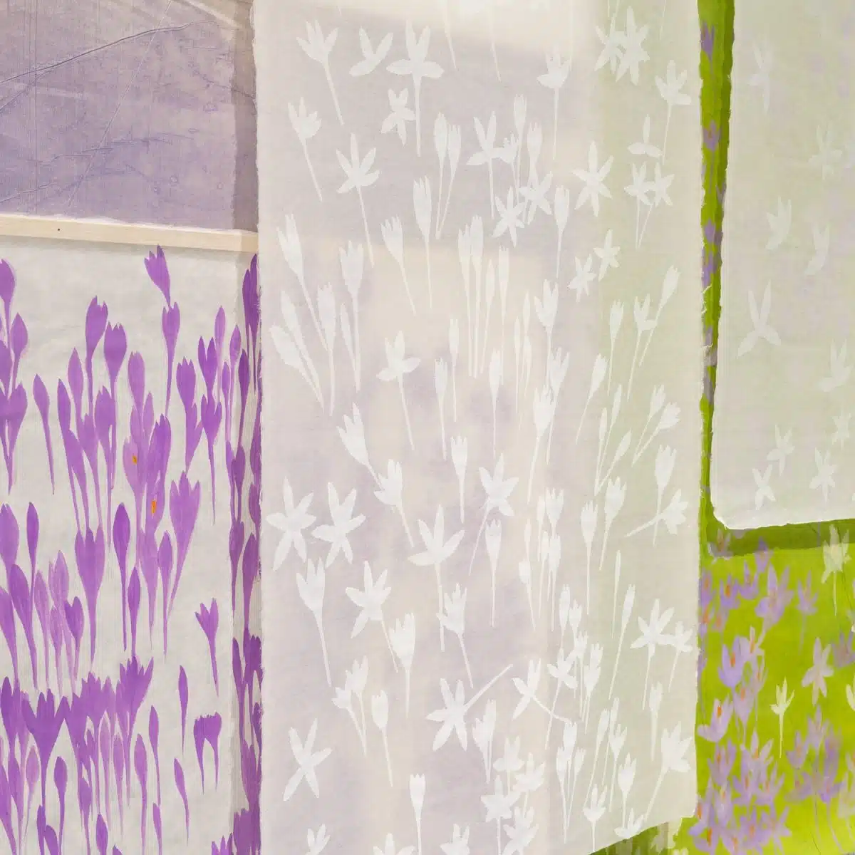 Crocus Carpet – 2025, Handmade Japanese paper (Mitsumata and Kozo, vintage and new), wooden battens, hand-mixed pigments, bookbinder’s paste, clear thread • £2,125