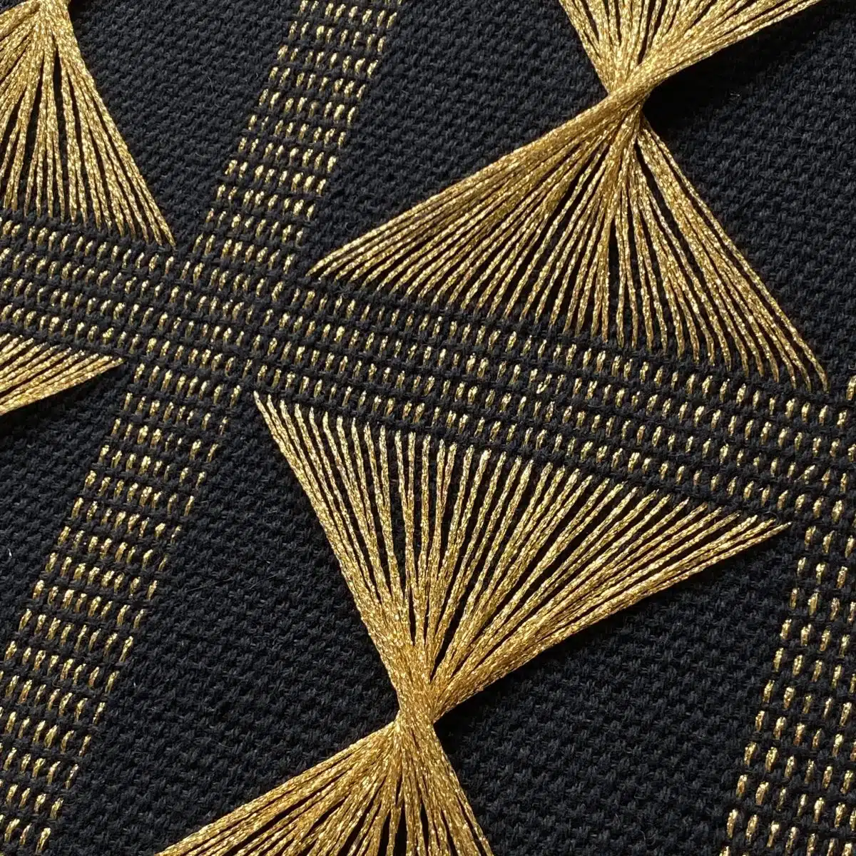 Sarah-May Johnson is a textile artist from Leicester who pushes the boundaries of traditional handloom weaving, through her innovative development of new techniques. This has included extensively modifying one of her looms to create a process she refers to as “crossing warp threads”. Traditionally warp threads remain parallel throughout the length of a woven cloth; with this technique, they cross and twist across the surface.