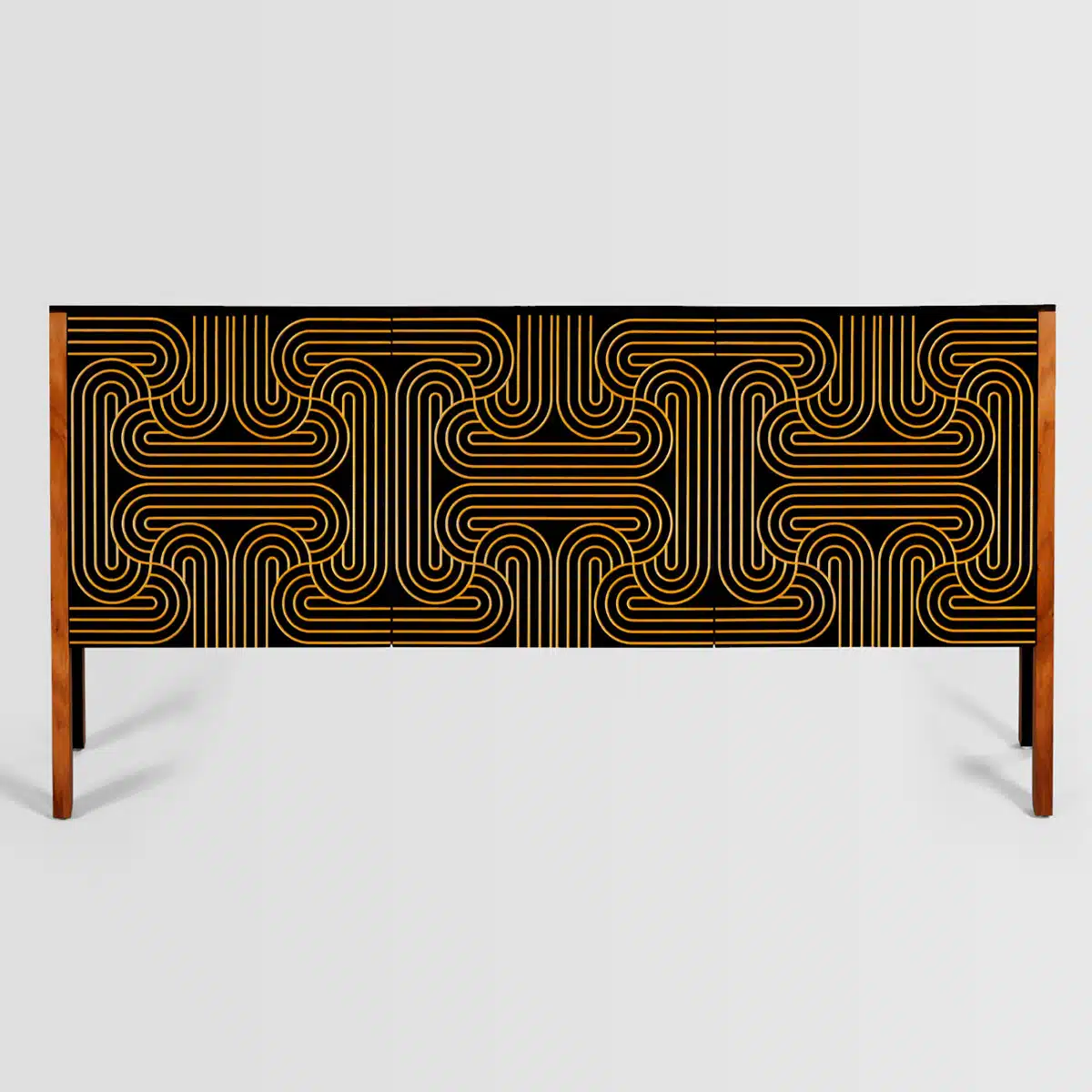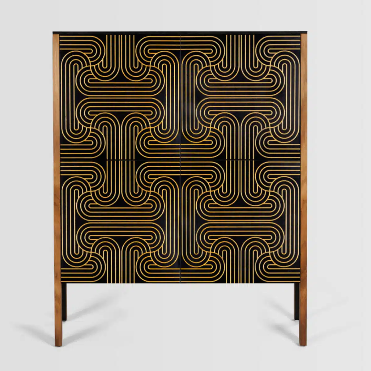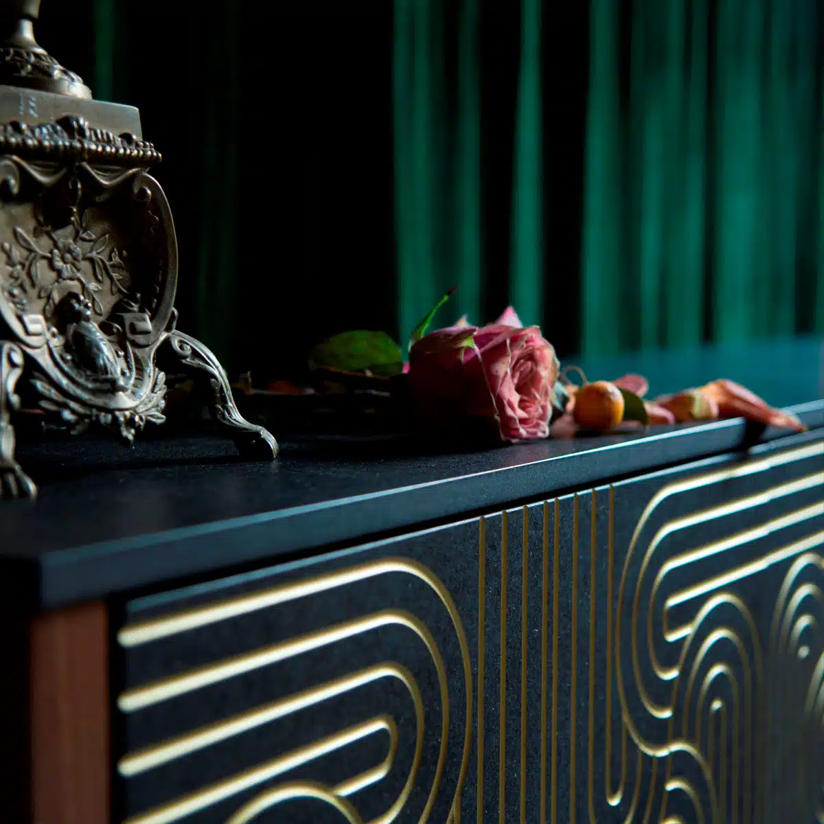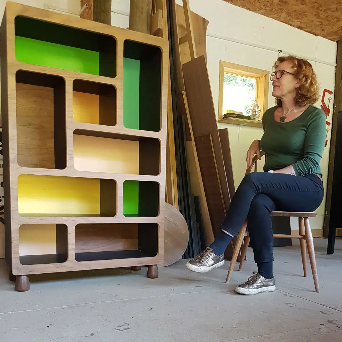 Based near Bath, Coucou Manou make furniture, mainly to order, in a mix of walnut and Valchromat, a high quality high density fibre board that is created ecologically from existing wood waste, dyed throughout so that the colour is solid. These materials are precision-cut to Nell’s specifications which she develops in consultation with a local CNC company, carefully asssessing the possibilities, pitfalls and solutions to potential issues. After cutting, the components come back to her rural workshop, where she individually hand assembles, gilds and polishes each piece of furniture.
